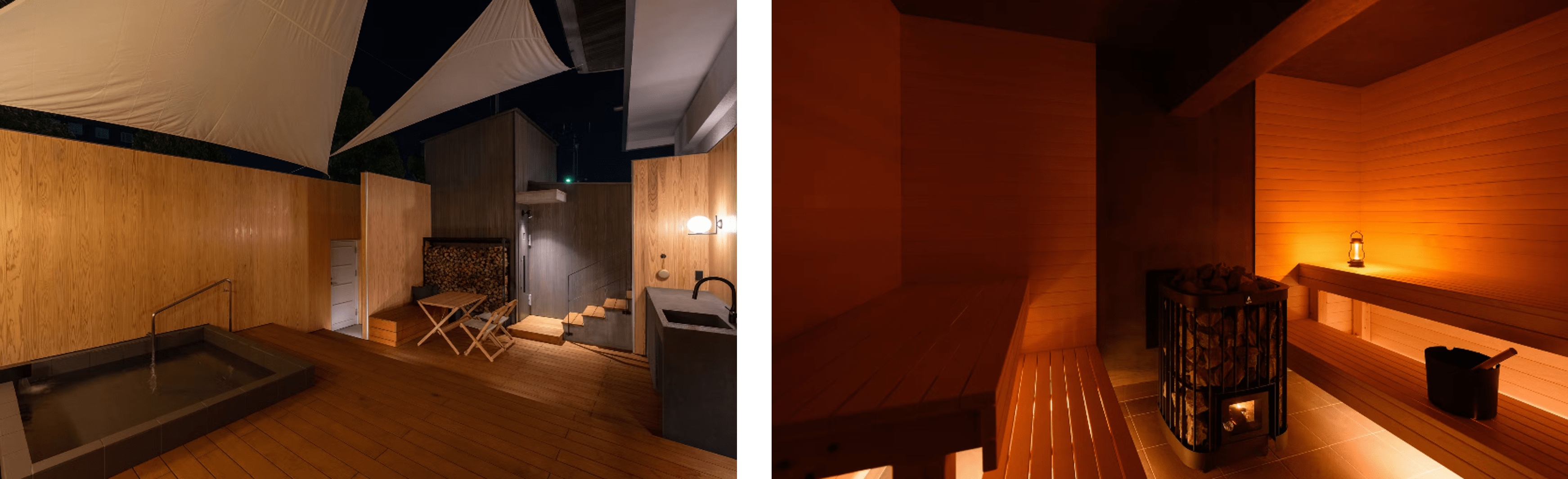 屋外にもフィンランド式サウナ、スパエリアがあり、敷地内の穏やかな自然を感じながら「瀬戸内ヒュッゲが体感できる宿」となっています。