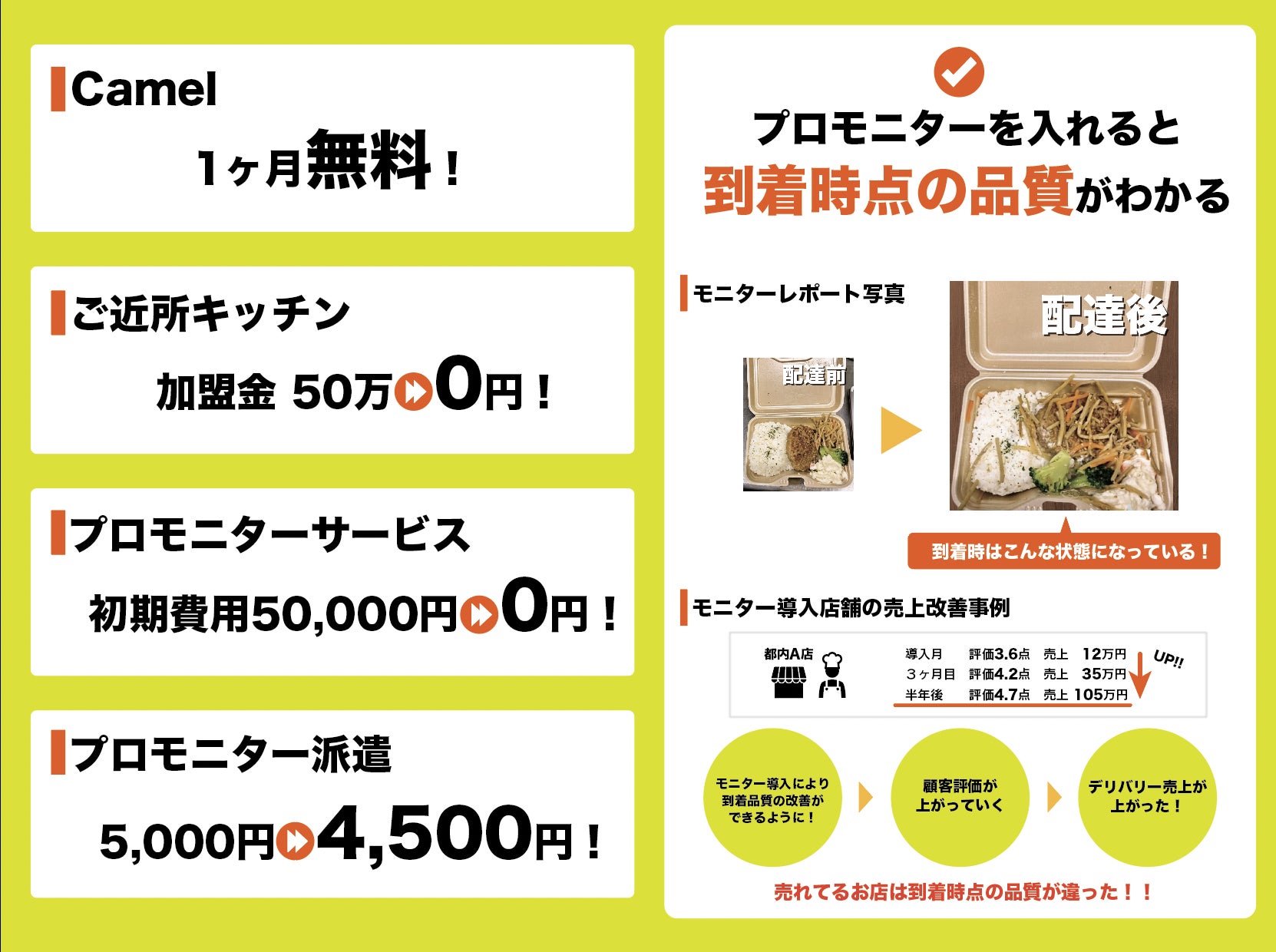 ■デリバリー注文一元管理サービス「Camel(キャメル)」を導入すると利用料金1ヶ月無料!