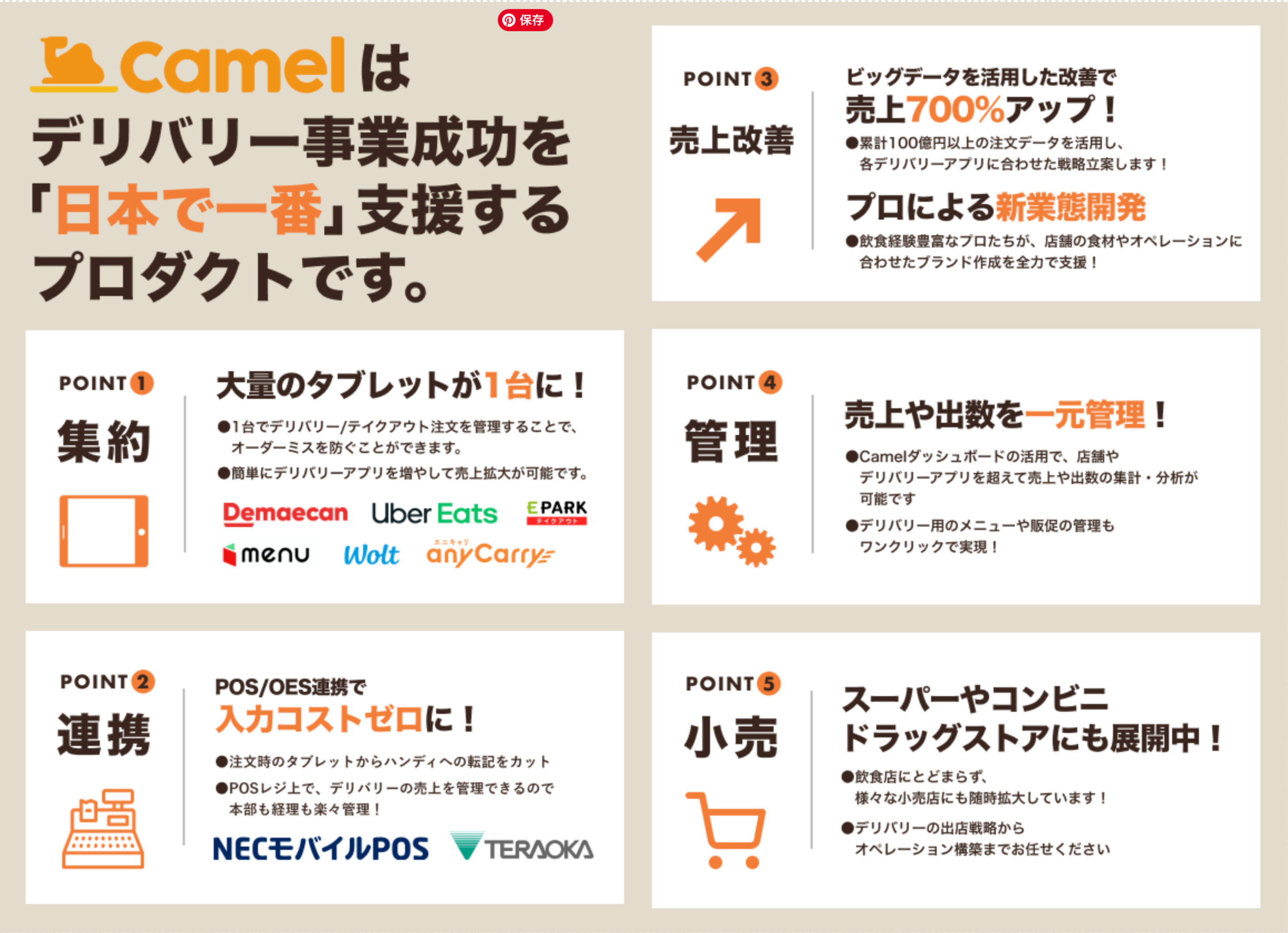 ■デリバリー注文一元管理サービス「Camel(キャメル)」を導入すると利用料金1ヶ月無料!