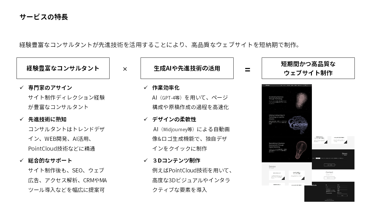 その中で、PointCloud技術を活用した3Dウェブデザインを提供しており、そのサービスについてご案内いたします。