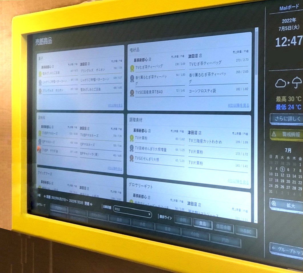 また、営業数値やチラシ情報のほか、近隣店舗との比較や好調商品など、「改善のヒント」となる情報も常時更新されます。こうした情報をミーティングで共有することで、チームメンバーから改善プランが生まれやすくなり、自分たちで考えたプランが成果に結びつくと、「やりがい」にもつながります。