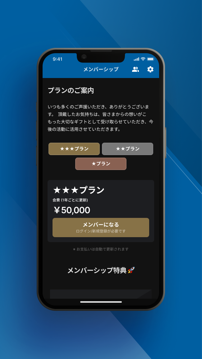 メンバーシップ機能からファンクラブ会員になって頂くと、チームから特別なグッズをお届けします!