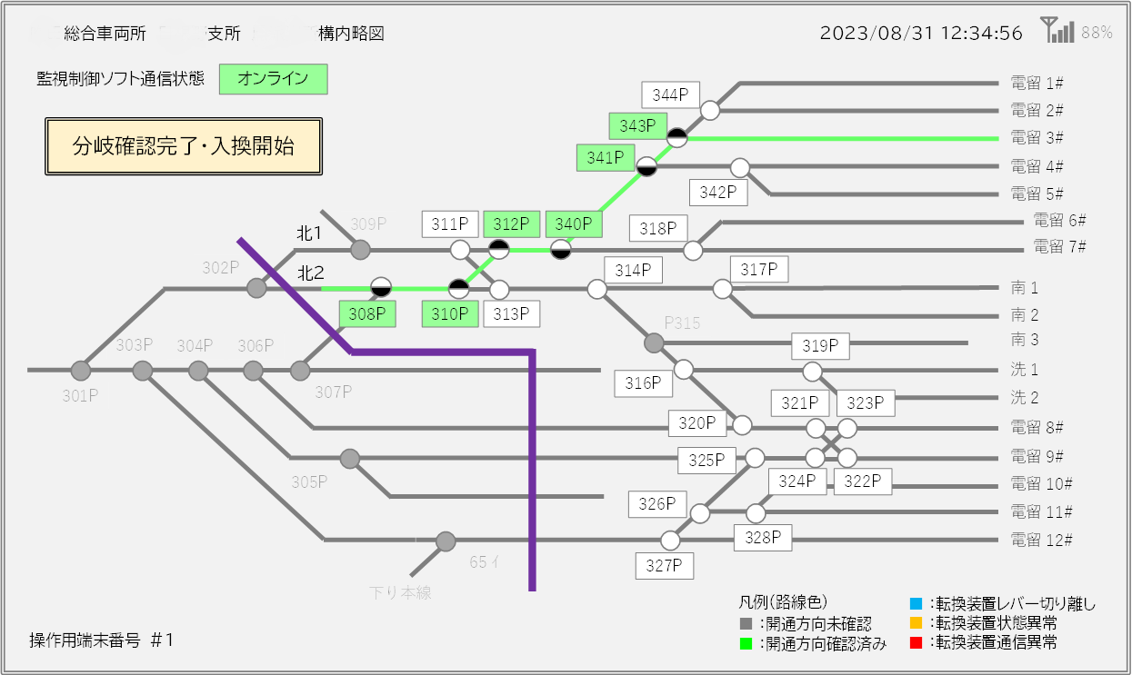 ・遠隔で分岐器の操作やカメラ映像での状態確認、進路構成状態を視覚的に表示します。