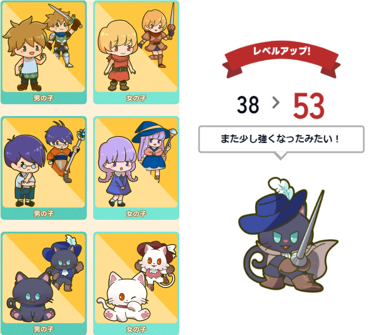 はじめに6種類の中から、気に入った「オリジナルキャラクター」を選択します。