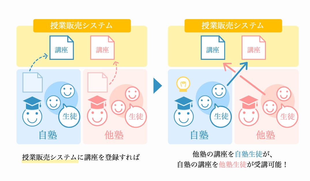 今回特許取得に至った両機能はユニークな独自性を有しており、クチコミ育成機能では保護者様の挙動を分析し、接触頻度を高めていくことにより、クチコミが発生する教室づくりをサポートします。また、授業販売機能では、他塾にお通いの生徒様に授業を販売したり、自塾の生徒が授業を購入したりすることにより、利益を獲得することが出来ます。