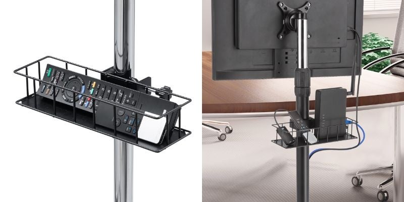 リモコンラック 横型 収納 クランプ式バスケット 丸パイプ 角パイプ トレー リモコンホルダー 小物入れ テレビスタンド テレビ収納 ツールワゴン 台車 簡単取り付け