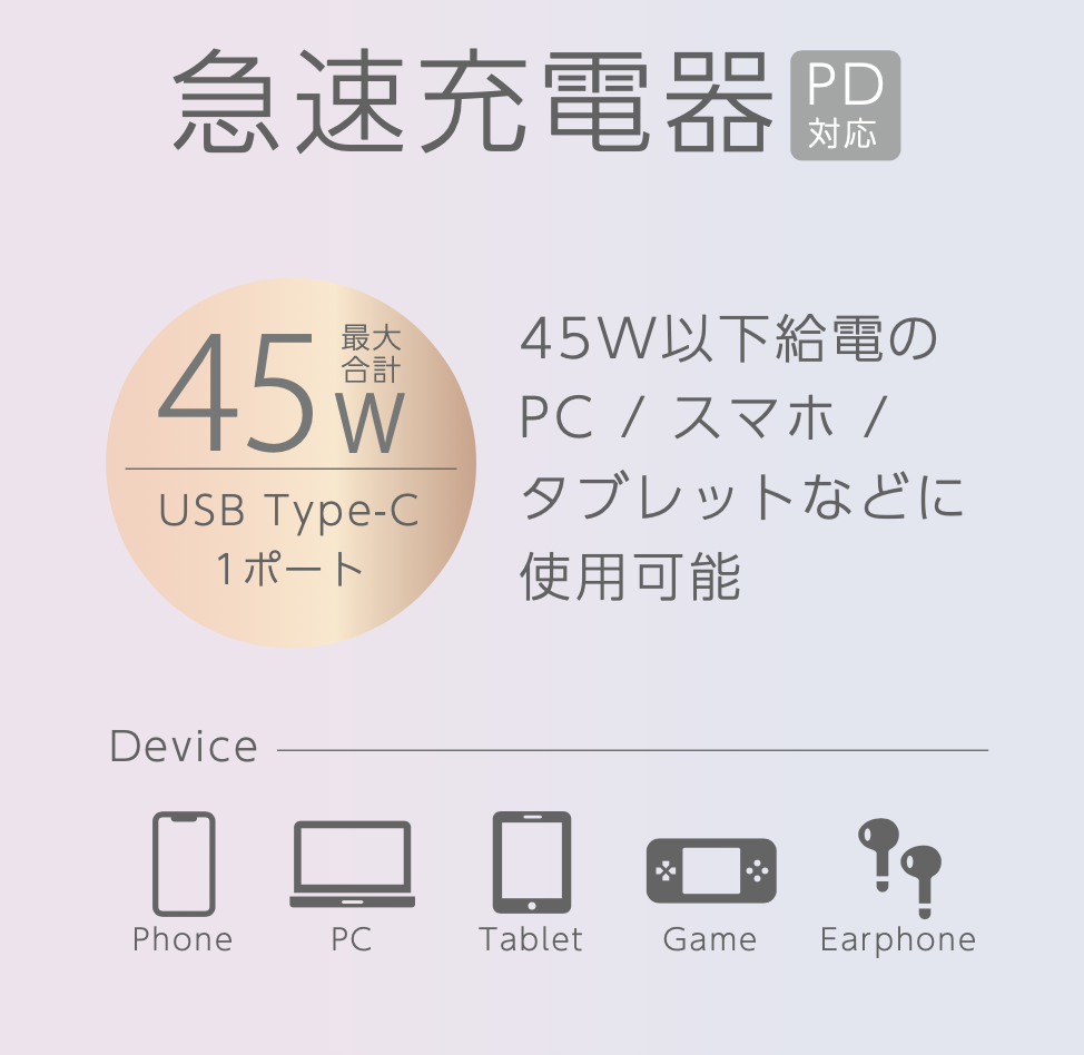 ■出力 :USB Type-C:5V3A 9V3A 12V3A 15V3A 20V2.25A (MAX 45W)
