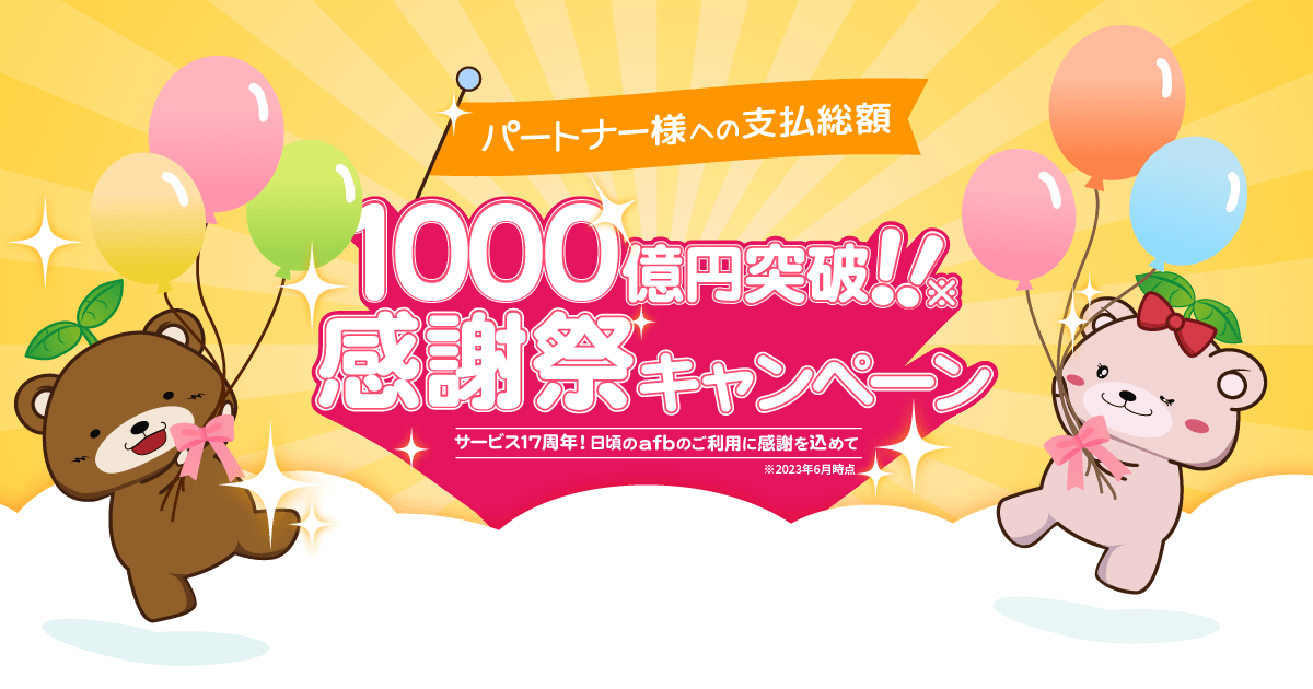 そんな中、広告主様・アフィリエイトパートナー様に支えられサービス開始17周年を迎えた「afb」は、アフィリエイトパートナー様へのお支払い総額が1,000億円を突破いたしました。
