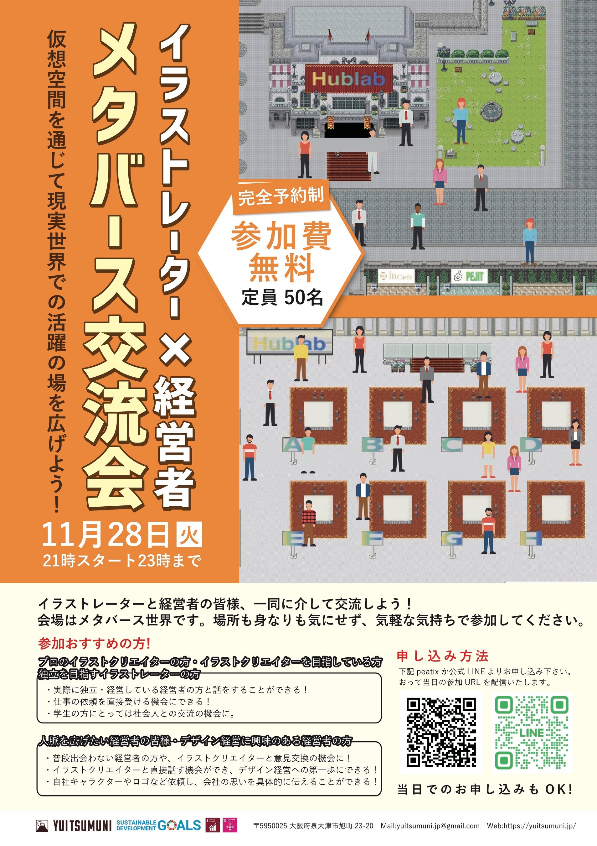 このメタバース交流会では、参加アーティストとの交流や作品紹介がなされるだけでなく、ビジネスマッチングや情報交流の場としても機能。