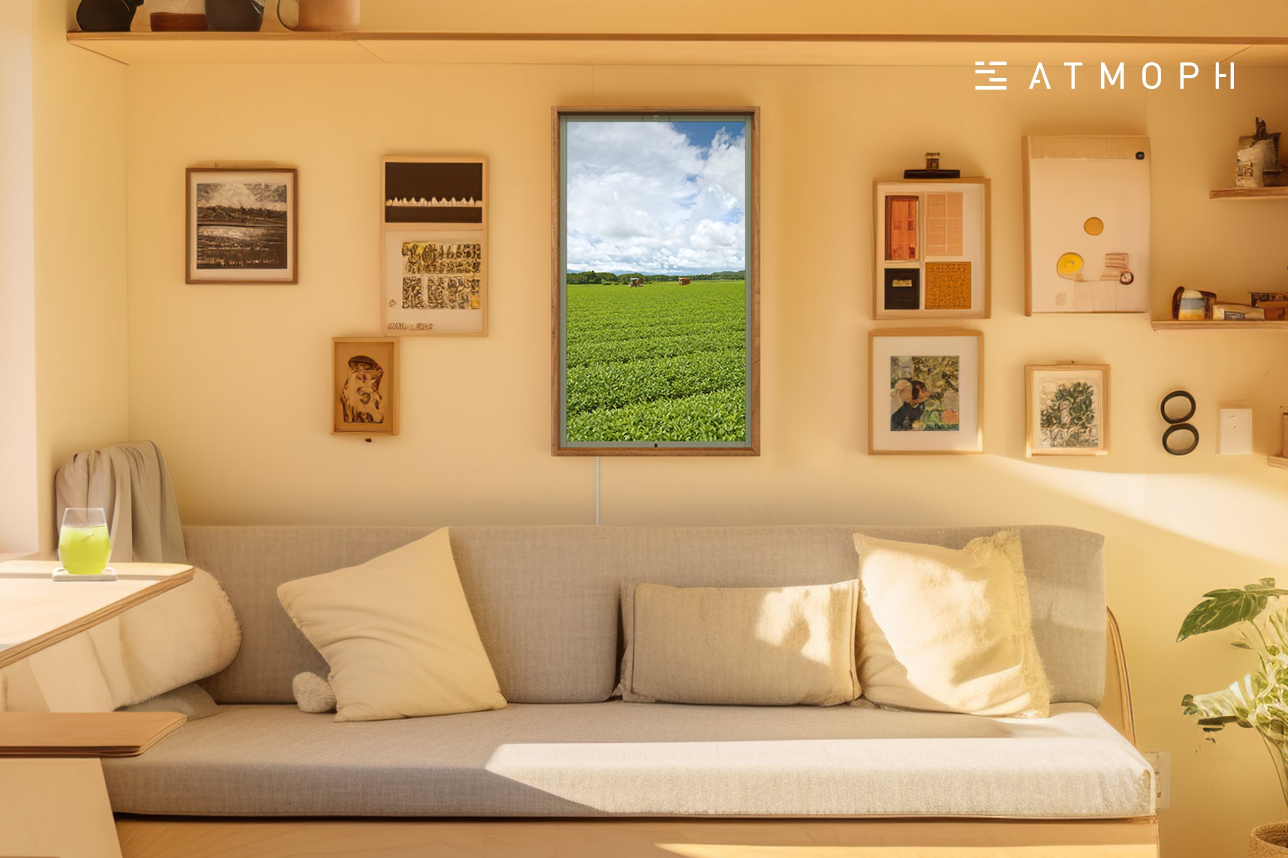 「家から見える風景を変えことができたら」というアイデアから生まれた、世界とつながる窓です。Atmophが独⾃で4K/6K撮影した世界各地1,600ヶ所の風景を通じ、お部屋に開放感と癒しの時間をもたらします。また、普段は知ることのない世界を体験してもらうことで、日々の生活に刺激をもたらしています。