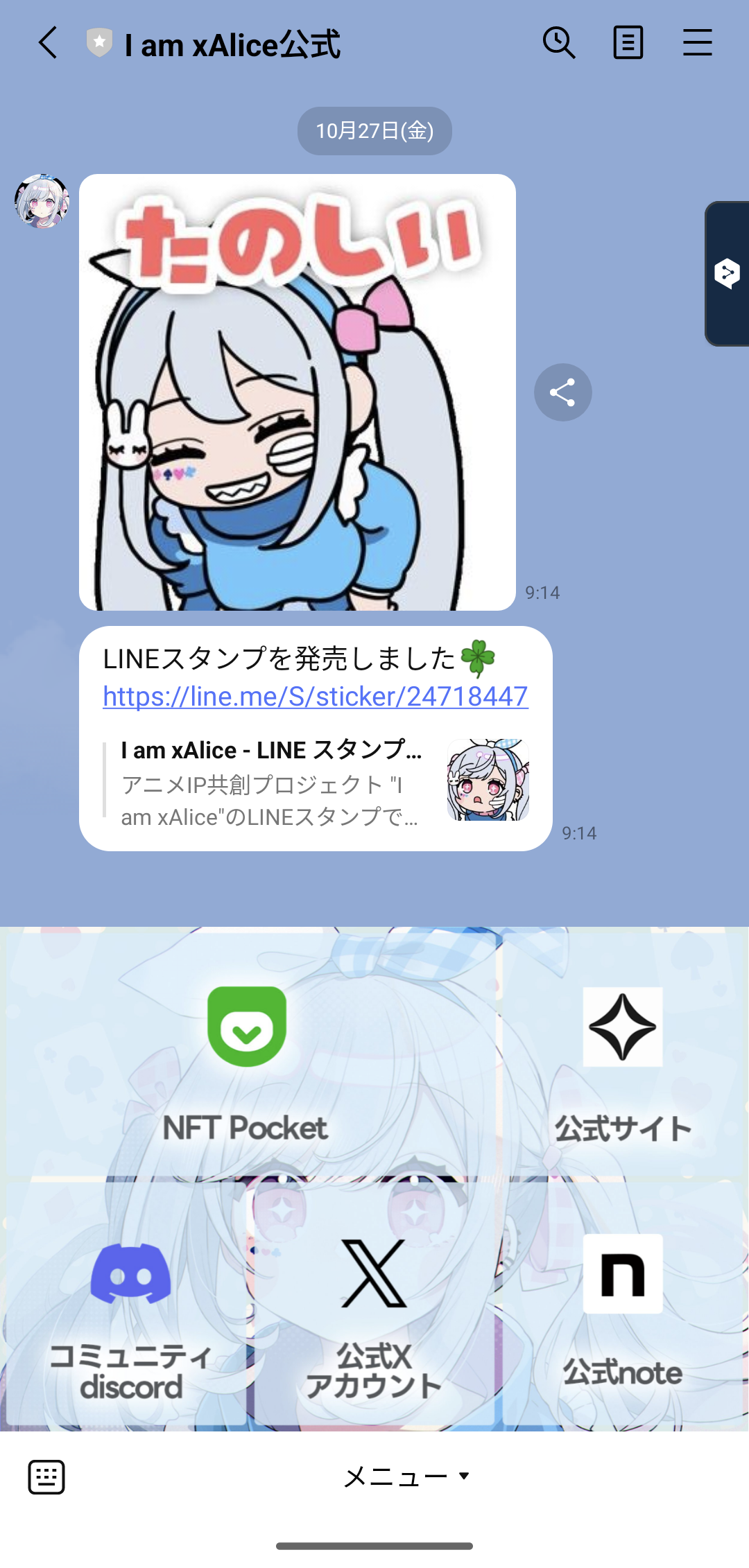 “I am xAlice”の公式LINEでは、NFTコレクションのセール情報やその他のコンテンツリリース情報、イベント情報など、プロジェクトの最新情報を随時発信してまいります!