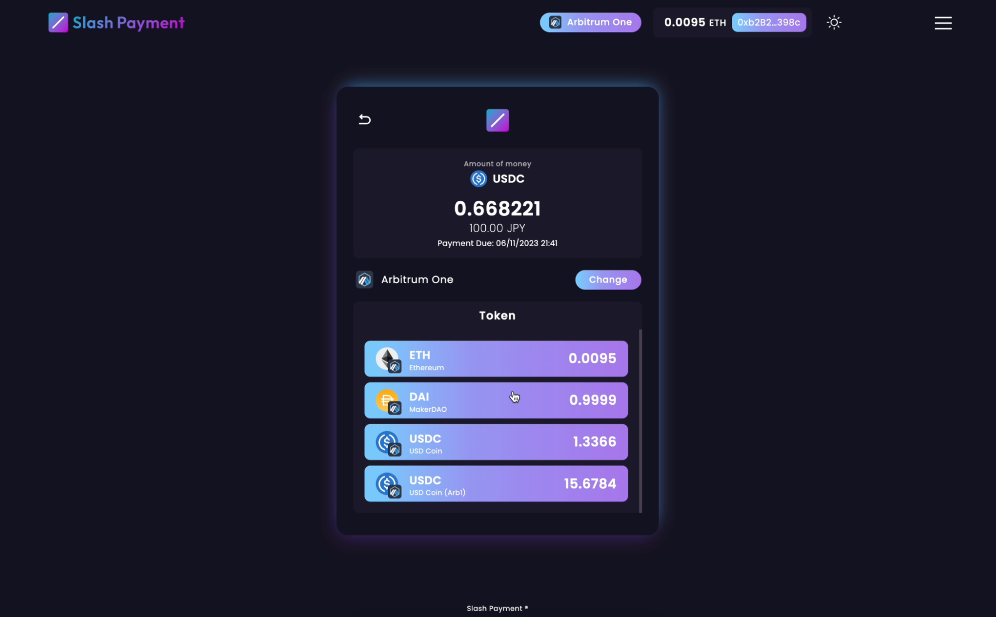 Slash PaymentのArbitrum対応により、Arbitrum上のさまざまなトークンでの決済が可能になりました。