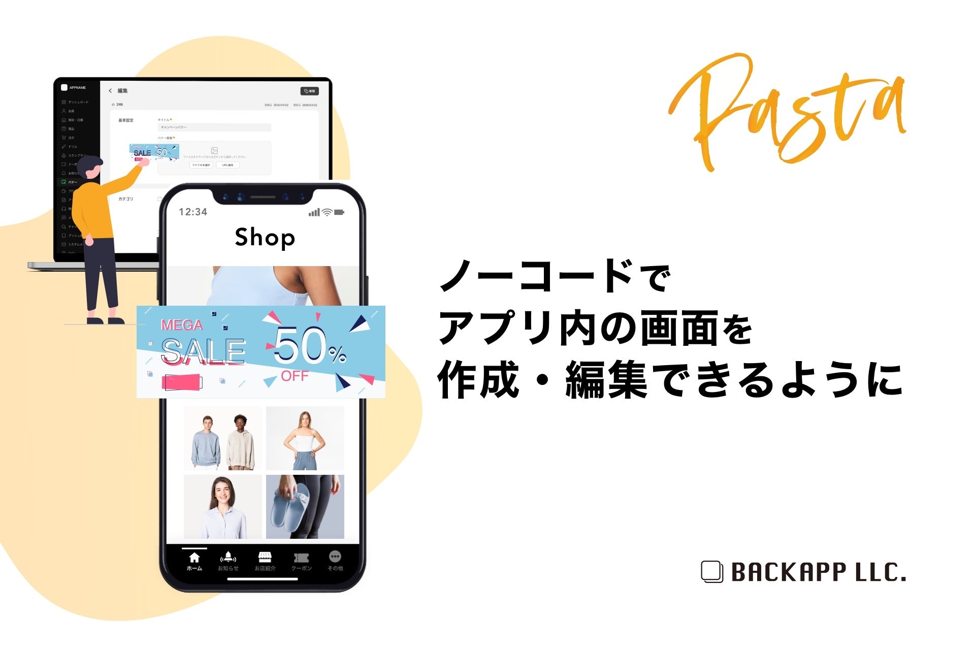 Pasta の動的画面管理機能では、アプリ内に表示するページを管理画面からプログラミング不要で作成・編集できます。