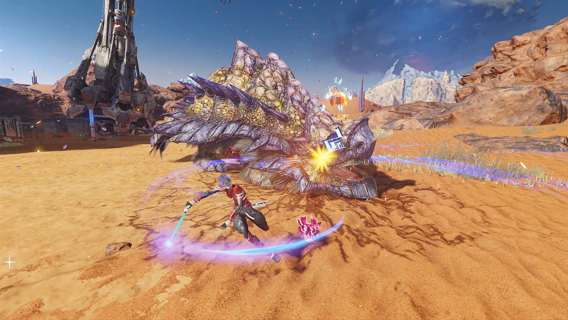 新エネミー種「スターレス」など、強大な敵との戦闘では、簡単操作の爽快なアクションでスピード感のある戦闘が楽しめます。