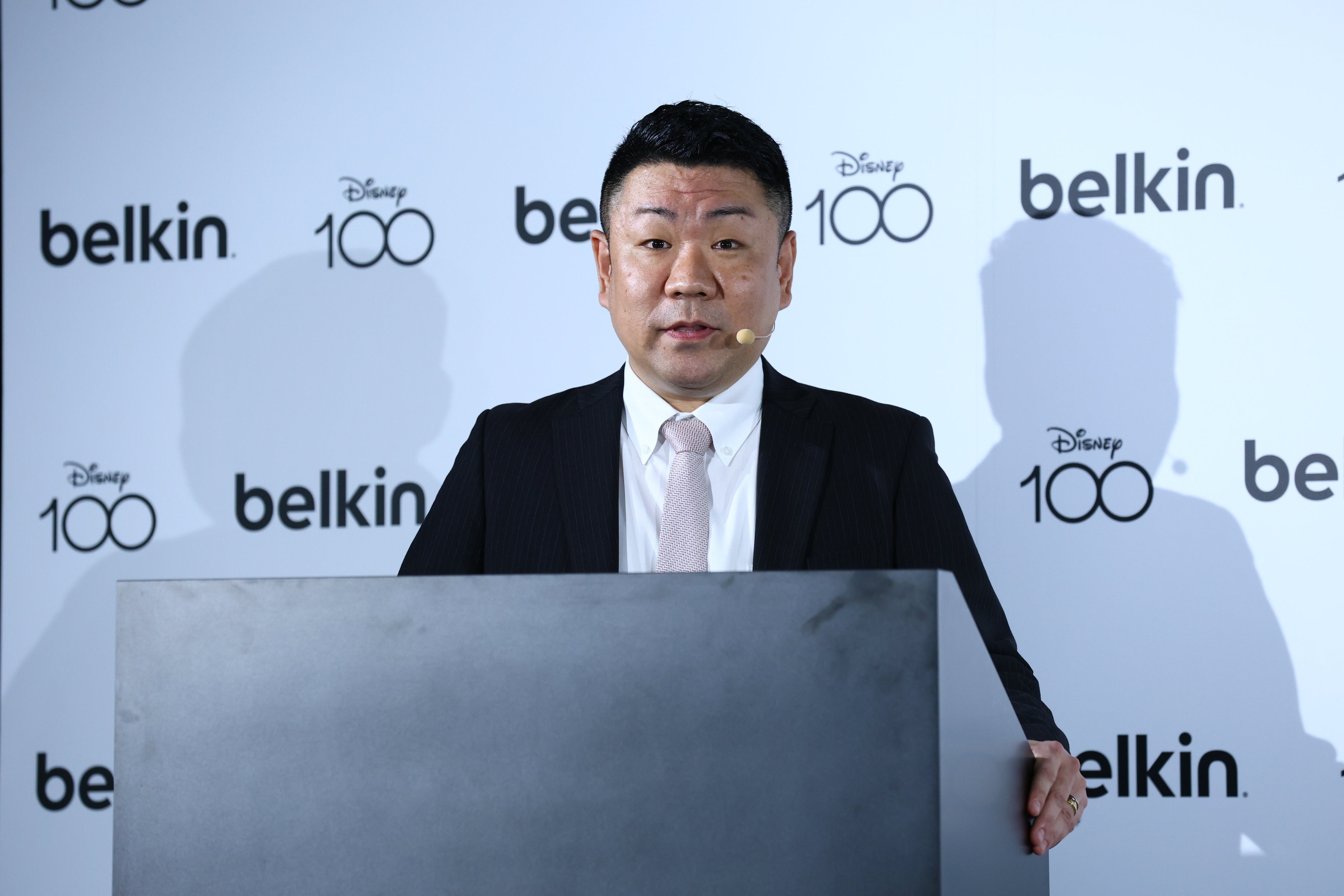 ディズニー様創立100周年おめでとうございます。私たちベルキンも40周年目にあたりまして、このプロジェクトが始まった時から何かの応援を頂きながら、このプロジェクトを進めてまいりました。ディズニー様のキャラクターを通じて、人と人をつなぐ、ベルキンのテクノロジーを通じて、またスマートフォンのアクセサリーを通じて、人と人をつなぐ両者のエッセンスを捉えて、今回の発売開始となります。