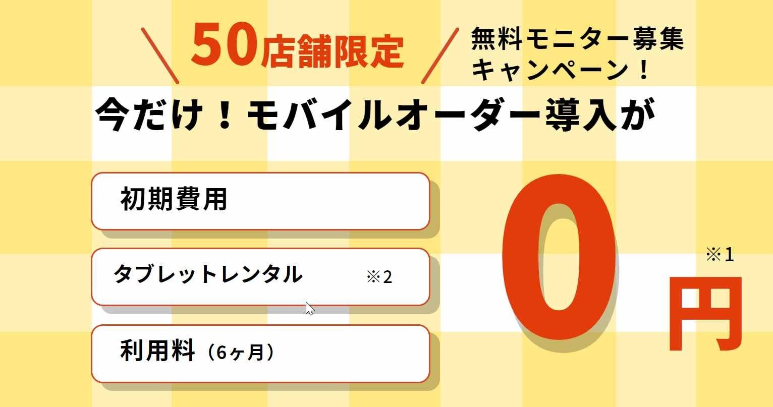 ・50店舗のモニターが決定した時点で、募集終了となります。