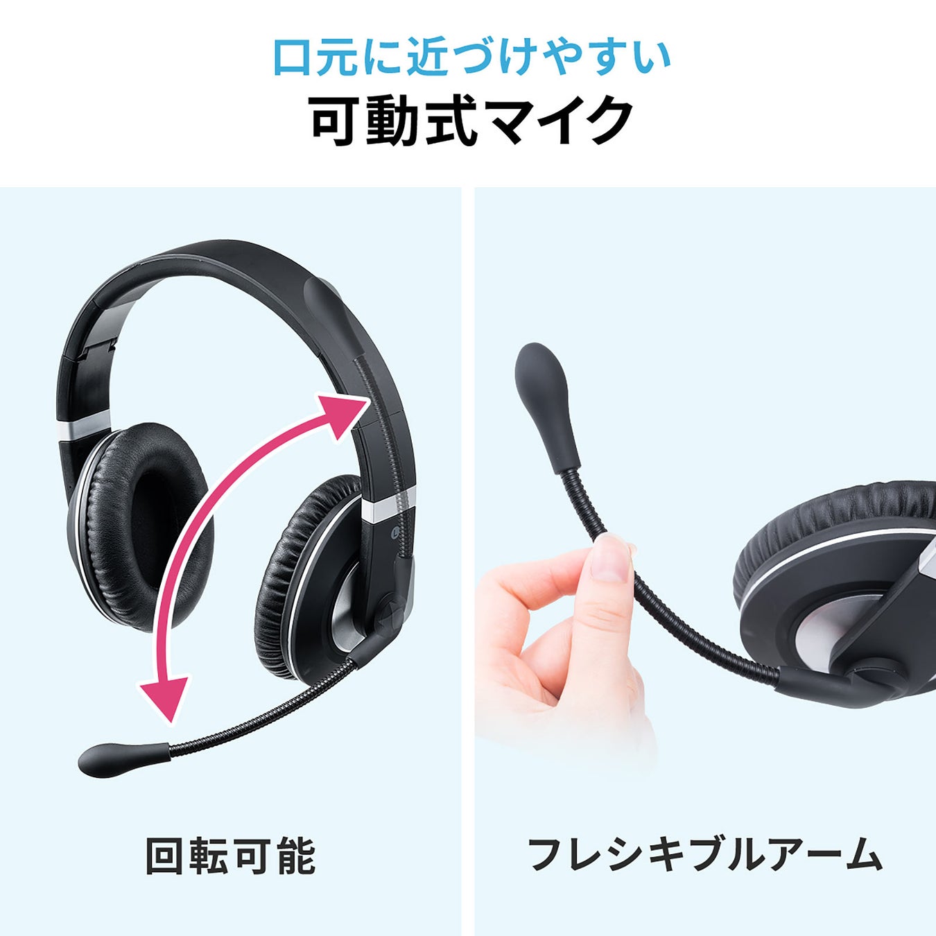 マイク部分のフレキシブルアームを曲げてマイクの位置を自由に調整できます。