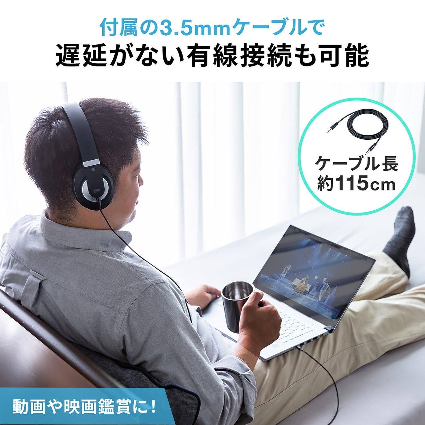 付属のオーディオケーブルを接続して有線ヘッドホンとして使用することもできます。