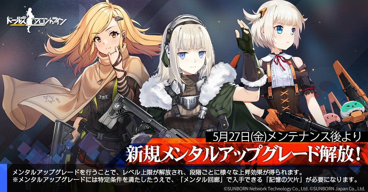 株式会社サンボーンジャパンは、スマホ向け戦略型シミュレーションゲーム『ドールズフロントライン(以下、「ドルフロ」)』において、キャラクターに新たな力を与える“メンタルアップグレード”の対象に3名が追加されることをお知らせいたします。