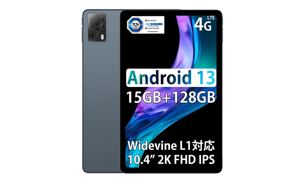 10.4インチ / Android 13 / 15GB+128GB+1TB TF拡張 / 2K IPSインセルディスプレイ / 4G LTE+5G WiFiモデル / Widevine L1対応 / GPS機能サポート