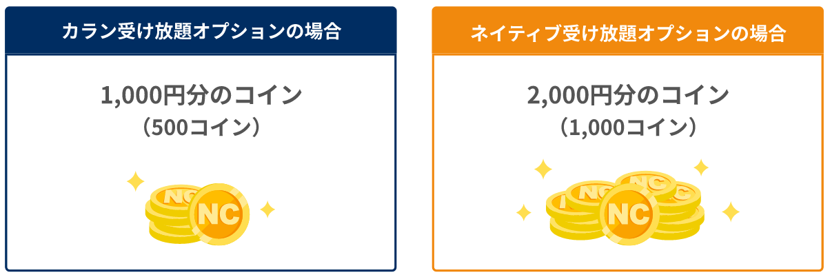②期間中、「カラン受け放題オプション」もしくは「ネイティブ受け放題オプション」をお申し込みいただいた方