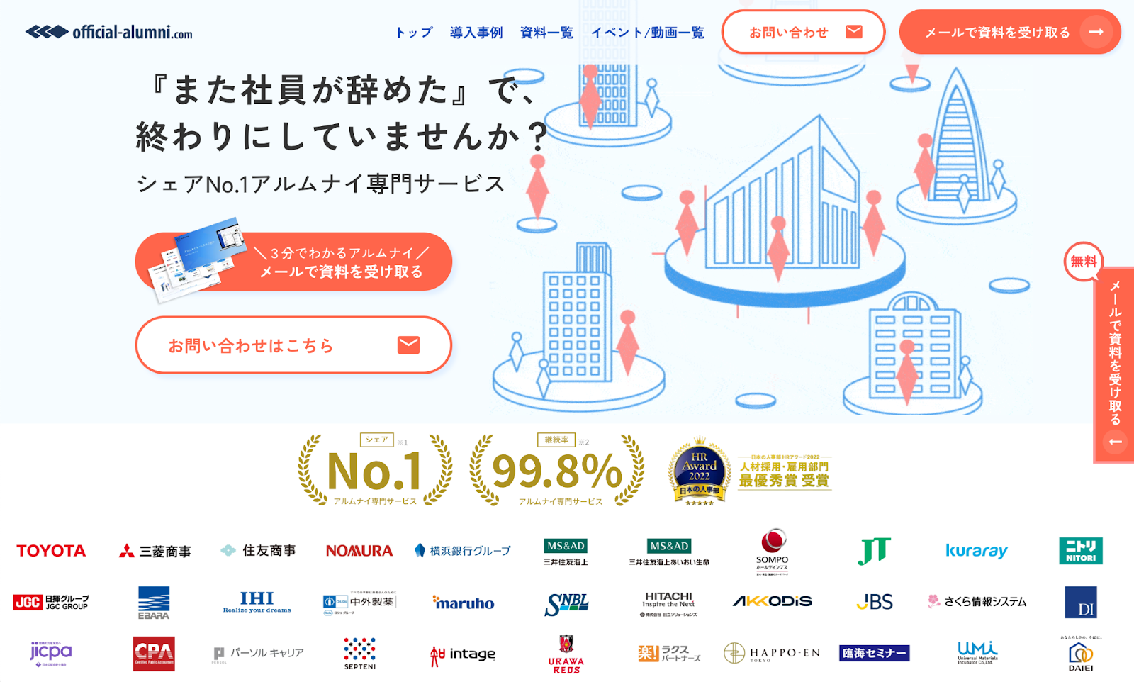 *日本マーケティングリサーチ機構調べ 調査概要:2021年6月期 企業向けアルムナイ専門サービス競合調査によるもの