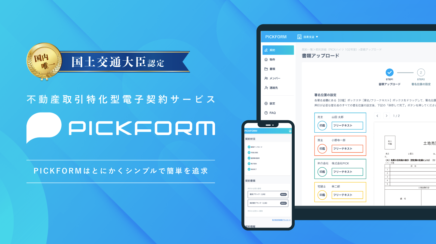 事業内容:不動産取引特化型電子取引サービス「PICKFORM」の企画/開発/運用