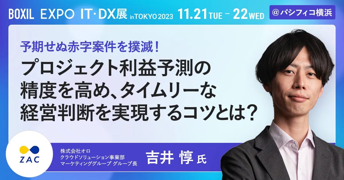 株式会社オロ(本社:東京都目黒区、代表取締役社⻑執行役員:川田 篤 以下「オロ」)のクラウドソリューション事業部 マーケティンググループ グループ長の吉井 惇が、スマートキャンプ株式会社主催「BOXIL EXPO IT・DX展in東京2023」の財務・経理担当者向けセミナーにて、11月22日(水)12:30より登壇いたします。