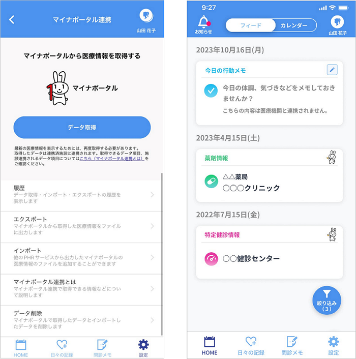 今回のマイナポータルとの連携により、生活者は薬剤情報や特定健診情報といった自らの医療保険情報をヘルスケアパスポートに登録できるようになりました。登録された情報はスマートフォンアプリでいつでも簡単に確認できるため、生活者自身の日々の健康づくりに役立てることができます。また、医療保険情報は生活者の同意を前提に医療機関へも共有され、医療機関でも患者が調剤された薬剤の情報や特定健診の結果を確認可能です。