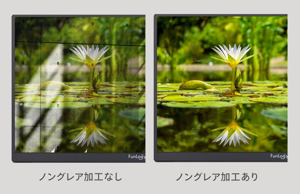 光の反射を分散させ、映り込みを軽減するノングレア加工を採用。自宅だけでなく、日の当たるカフェの窓際や屋外での作業にも適しています。