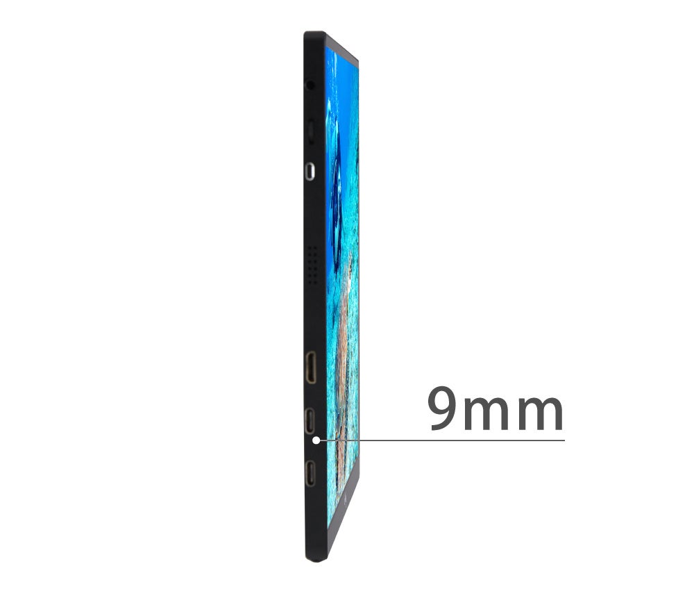 本体が650g以上に重くなることも、9mm以上に厚くなることもない、スペックそのままの軽量・薄型モバイルモニターです。