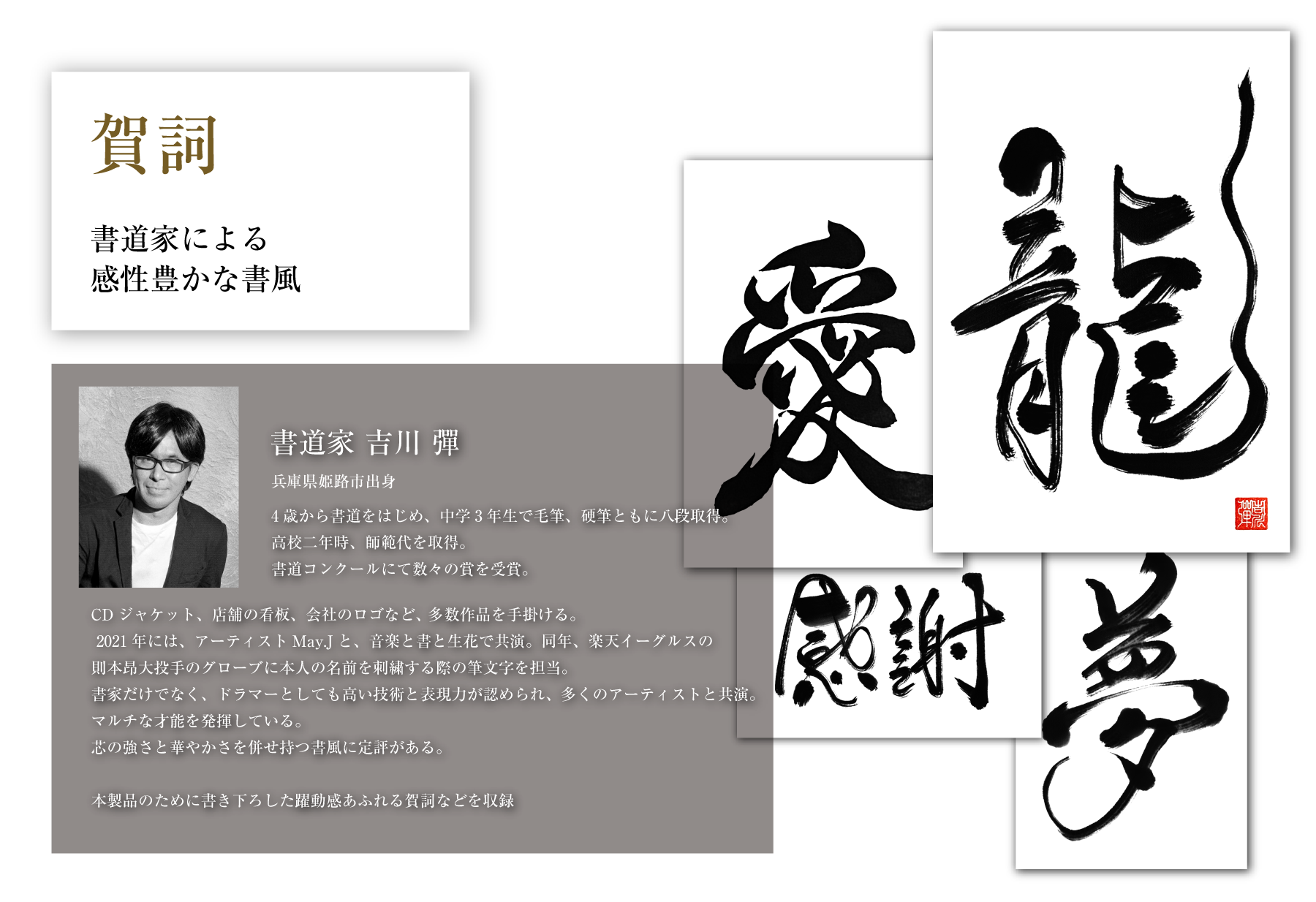 「筆結び」は一年中、様々な用途にご利用いただける多機能なツールです。グリーティングカード、カレンダー、往復はがきなどのデザイン作成に対応しており、スマートフォンを使用していつでもどこでも手軽にデザインが可能です。