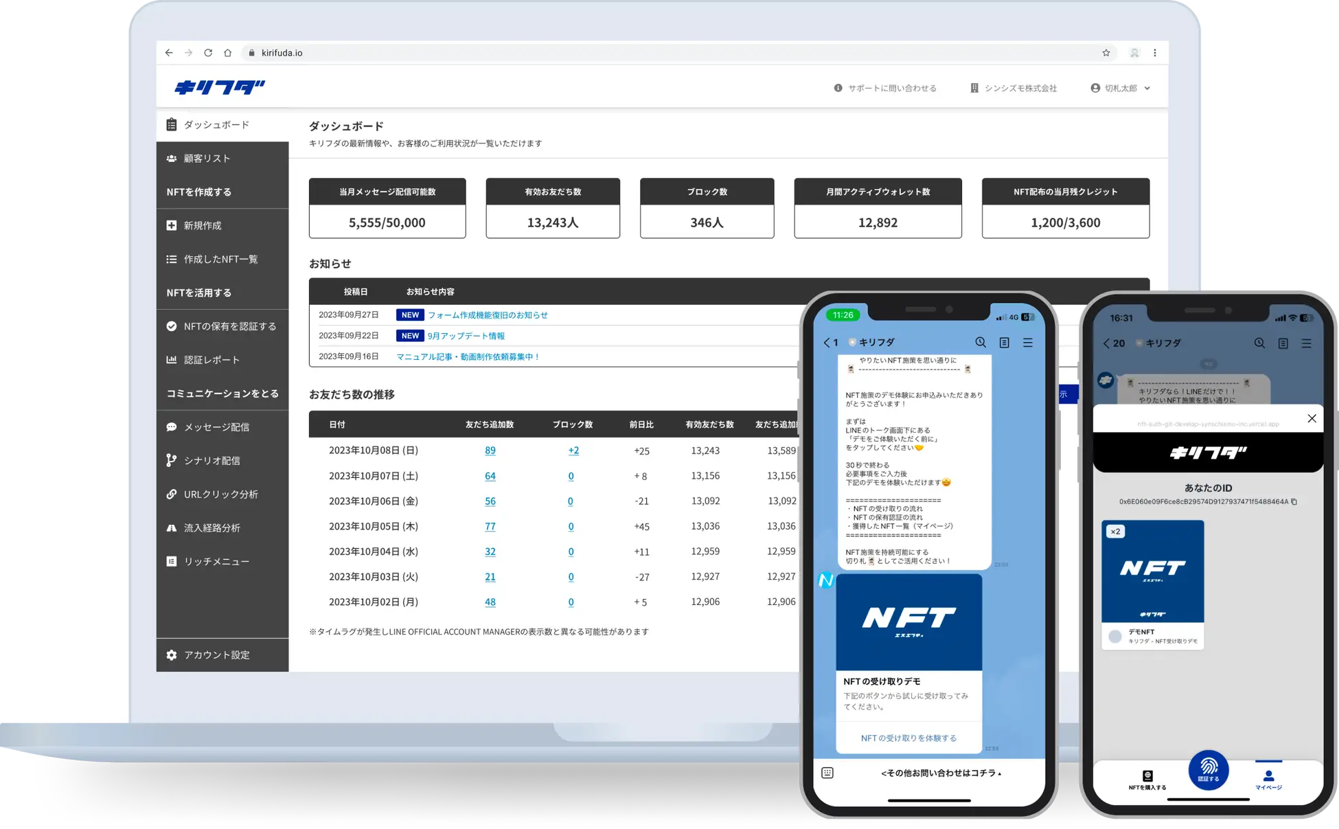 本取り組みのデジタルステッカーは、NFTをベースに発行しており、シンシズモが提供するNFTに関わるユーザー体験をLINEで完結させるサービス「キリフダ」を利用しています。