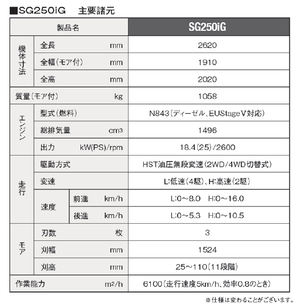 【SG250iG試作機の主要諸元】