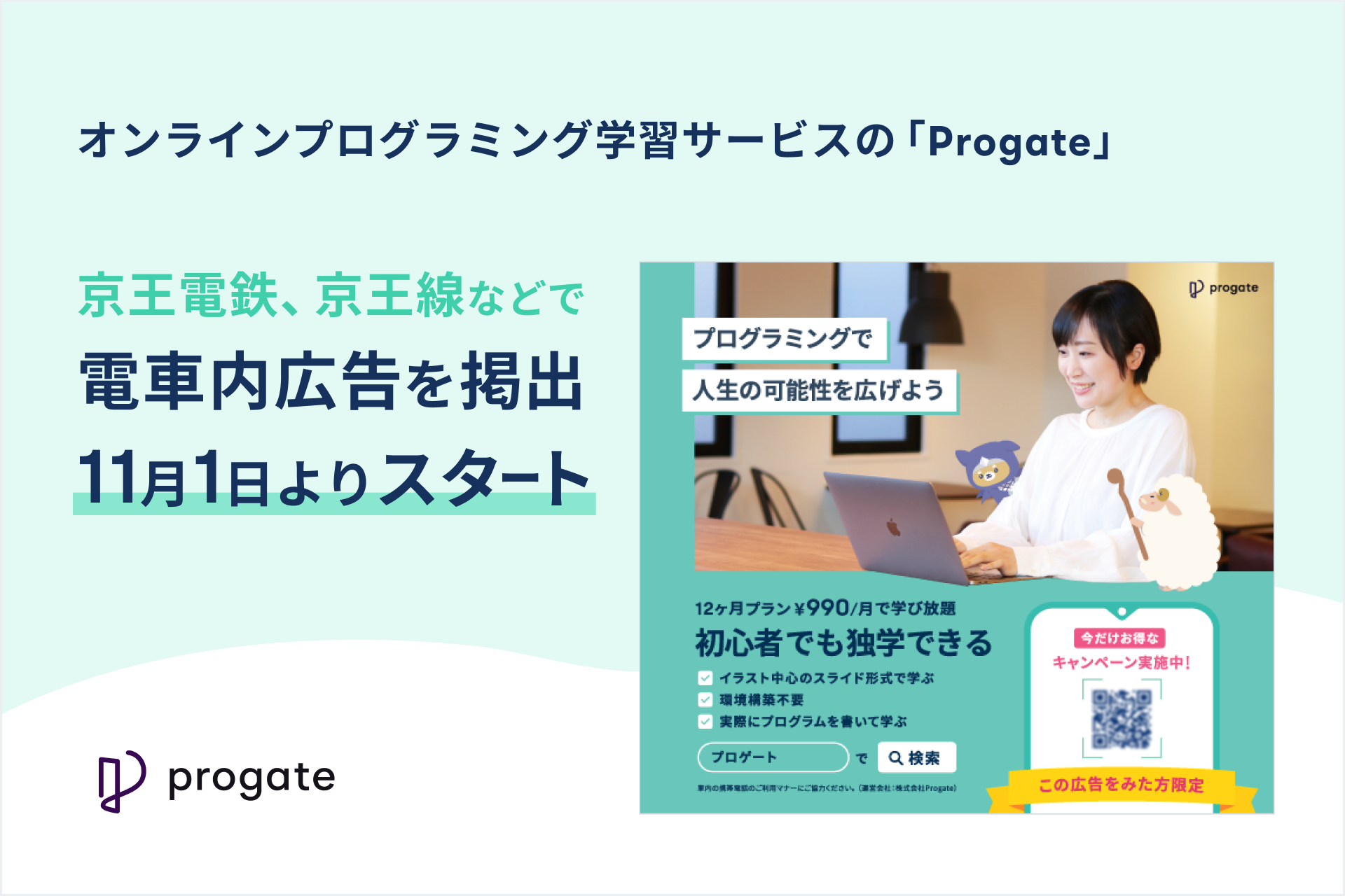 今回、Progateが広告を掲出する京王電鉄路線の沿線には、17万社以上の事業所が立地しており、通勤で使用する方が多く存在しています。「Progate」をご活用いただき、より多くの働くみなさまがデジタルスキルを習得し、可能性を広げるきっかけを提供できるよう、今回電車広告を掲出することといたしました。