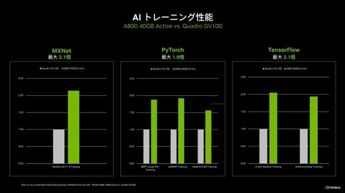 NVIDIA A800 40GB Active AIトレーニング性能
