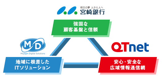 株式会社QTnet(本店:福岡市、代表取締役社長:小倉良夫)は、株式会社宮崎銀行(宮崎市、代表取締役頭取:杉田浩二)および宮銀デジタルソリューションズ株式会社(宮崎市、代表取締役社長:芳賀文彦)と「地域社会のデジタルトランスフォーメーション(DX)推進に関する連携協定」を本日2023年11月14日に締結しました。