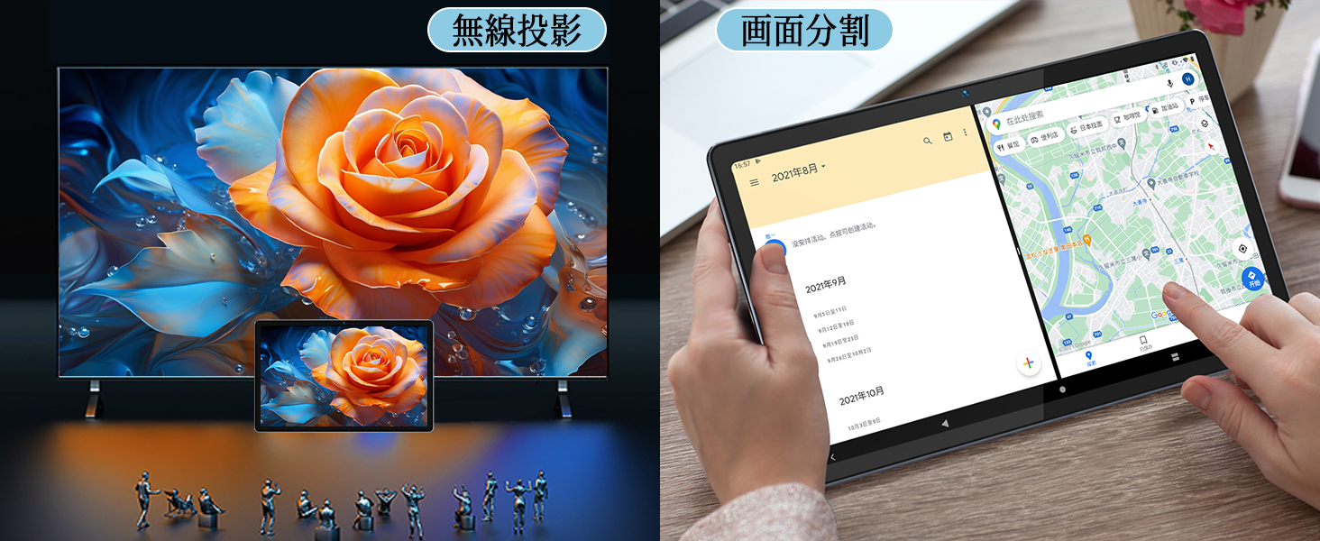 ワイヤレス投影機能により、タブレットの映像を大画面に転送し、家族や友人と幸せを共有できます。画面分割機能で2つのソフト画面を同時に開くことができ、仕事や勉強が効率化!