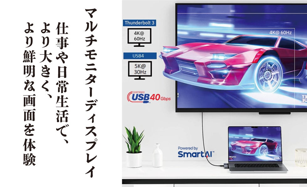 4K@30Hz HDMIマルチモニター表示対応、40Gbpsデータ転送