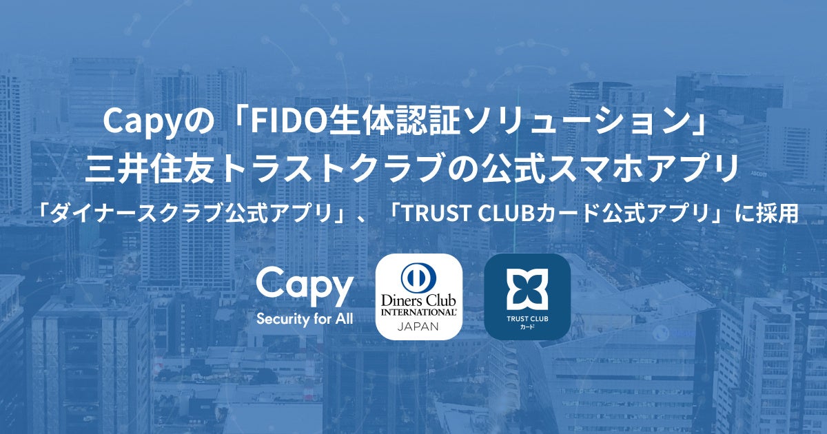 Capy株式会社(本社 東京都千代田区、代表取締役社長 CEO 岡田満雄、以下「Capy」)の提供する「生体認証ソリューション」がダイナースクラブカード・TRUST CLUBカードを発行する三井住友トラストクラブ株式会社(本部 東京都中央区 代表取締役社長 五十嵐 幸司、以下 「三井住友トラストクラブ」)の公式スマホアプリ「ダイナースクラブ公式アプリ」、「TRUST CLUBカード公式アプリ」に採用されました。