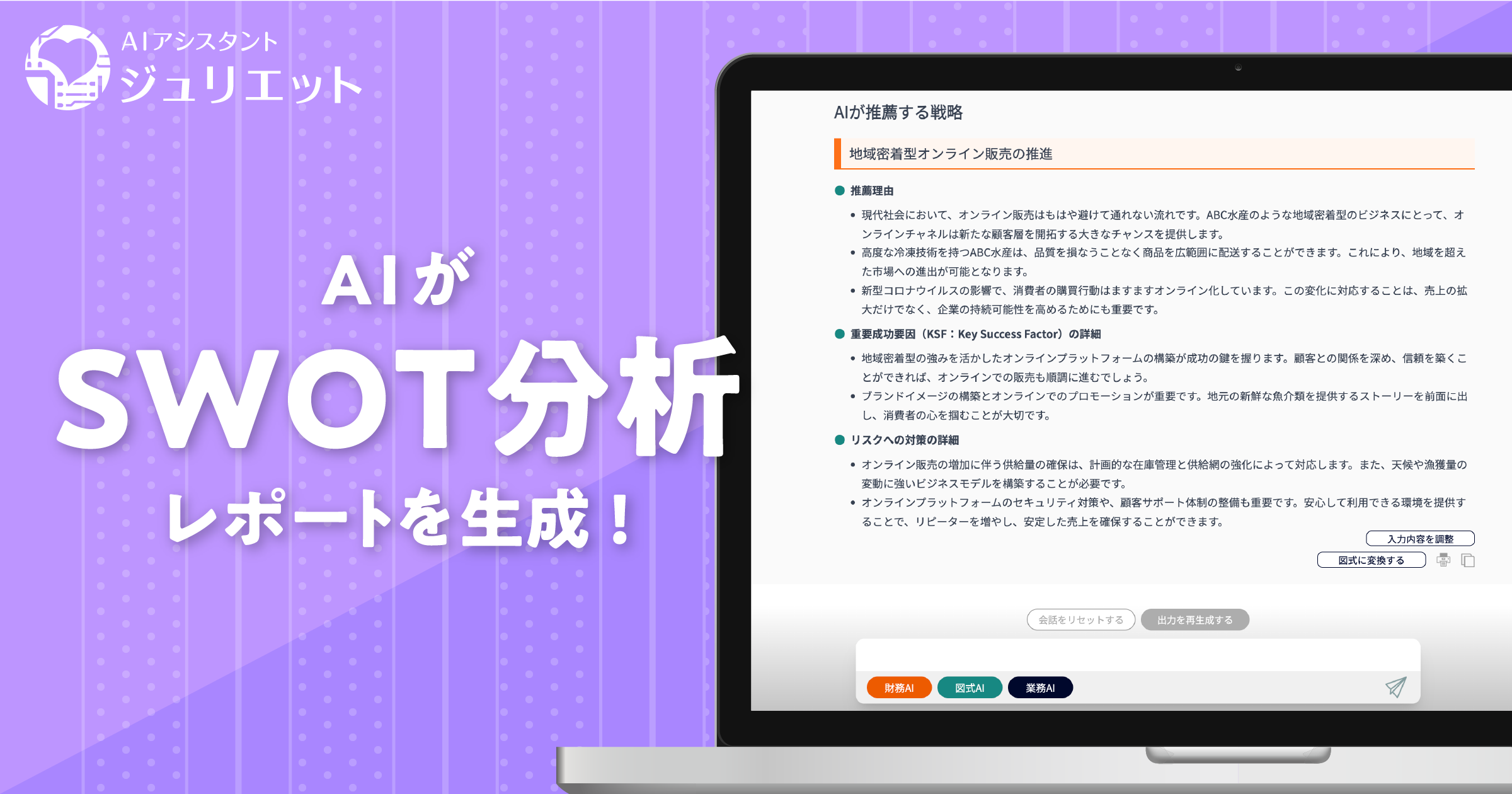 ジュリエットAIアシスタントのSWOT分析機能は、その一環として、企業が直面する課題を解決し、戦略的な意思決定をサポートすることで、顧客の成功に貢献します。