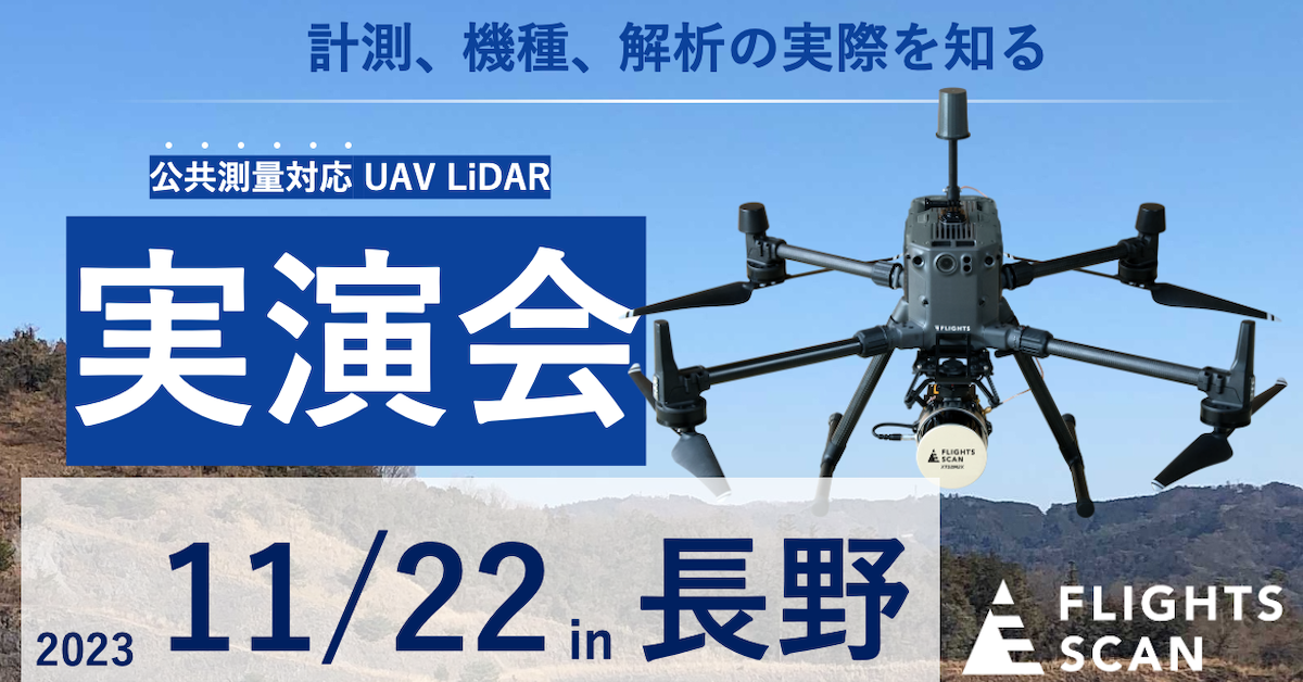 UAVレーザ測量の導入をご検討中の方、国土地理院 公共測量における「作業規程の準則」の各種基準を満たした”次世代ドローンLiDAR”にご興味をおもちの方は、ぜひ事前お申し込みの上、11月22日(水)長野県にて開催の無料実演会へお越しください!