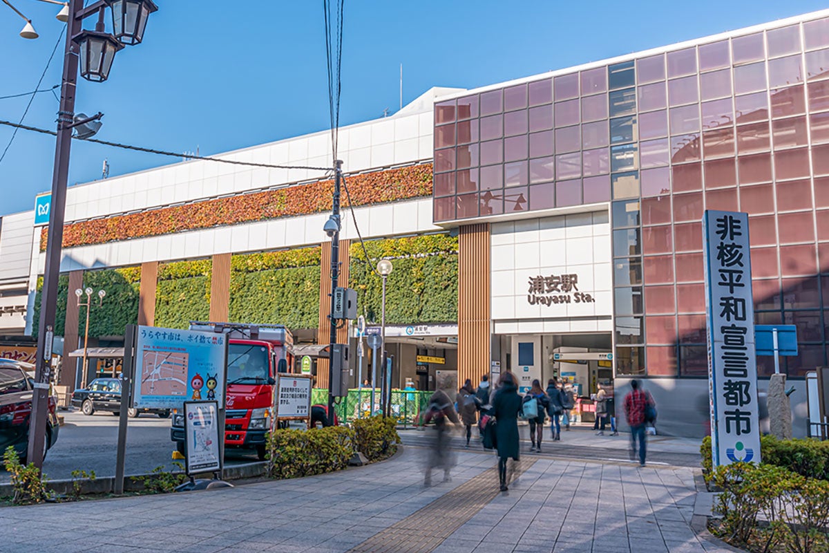 浦安駅の特長は、何といっても日本橋駅や大手町駅まで乗り換えなしで約20分と、都心部へのアクセスが抜群であること。また、路線バスの運行数も多いため、生活する上での交通利便性が高いことが挙げられます。駅周辺には複数のスーパーがあるほか、ドラッグストアやコンビニ、飲食店が揃っているので、日常の買い物や外食にも困りません。
