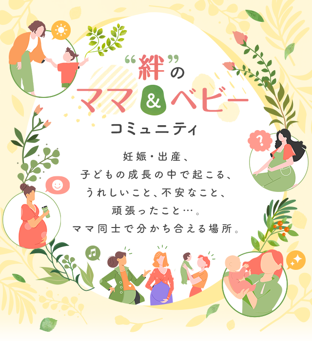 「“絆”のママ&ベビー コミュニティ」は、“みんな(プレママ・ママ仲間)があなたを待っている。ママ同士での対話が弾む場”をコンセプトに立ち上げた、プレママ・ママが集まるファンコミュニティです。ここでは、妊娠や出産、子供の成長の中で起こる楽しさや嬉しさ、不安なこと、頑張りなどを、同じ年齢・月齢の子供を持つママ同士で共感し合うことができます。また、日々の育児を通じて得た知識や体験について共有することで、新たな発見や気づきを得ることが可能です。