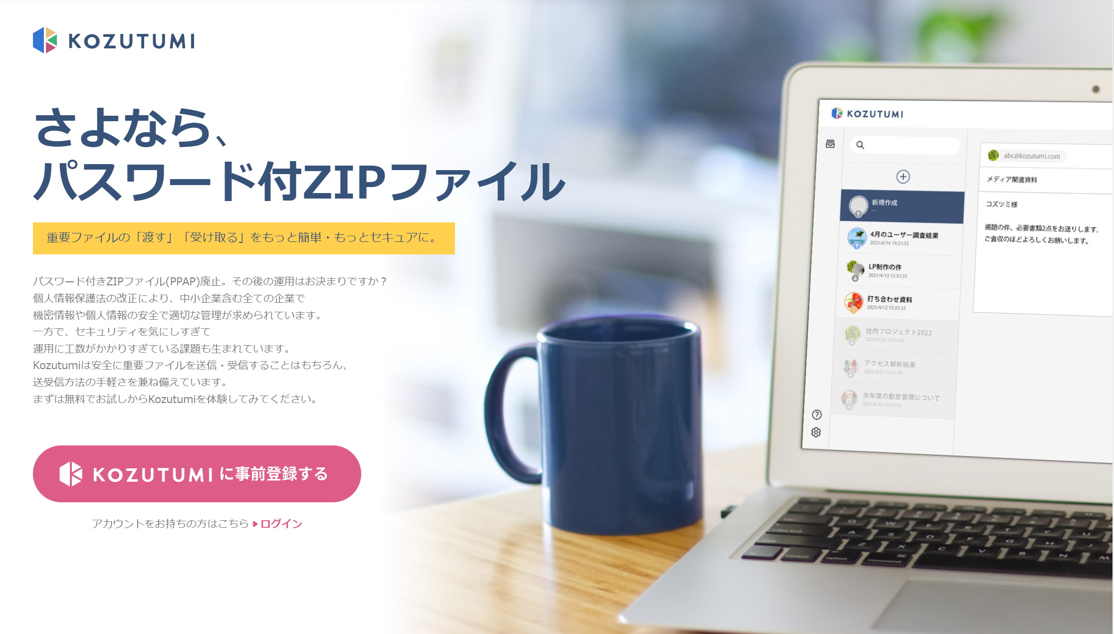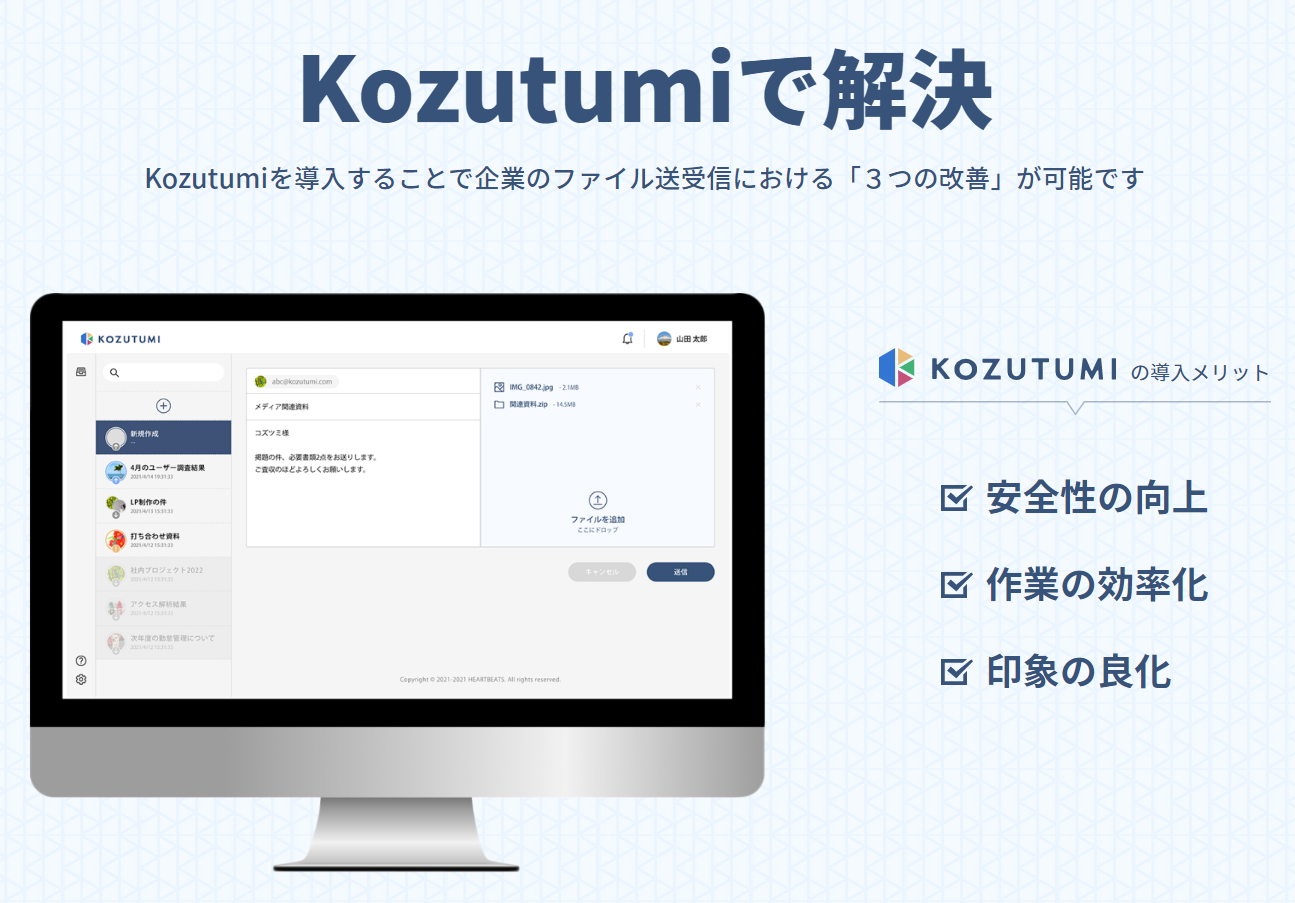 ●Kozutumiで、安心安全、簡単に重要ファイルの送受信を可能に