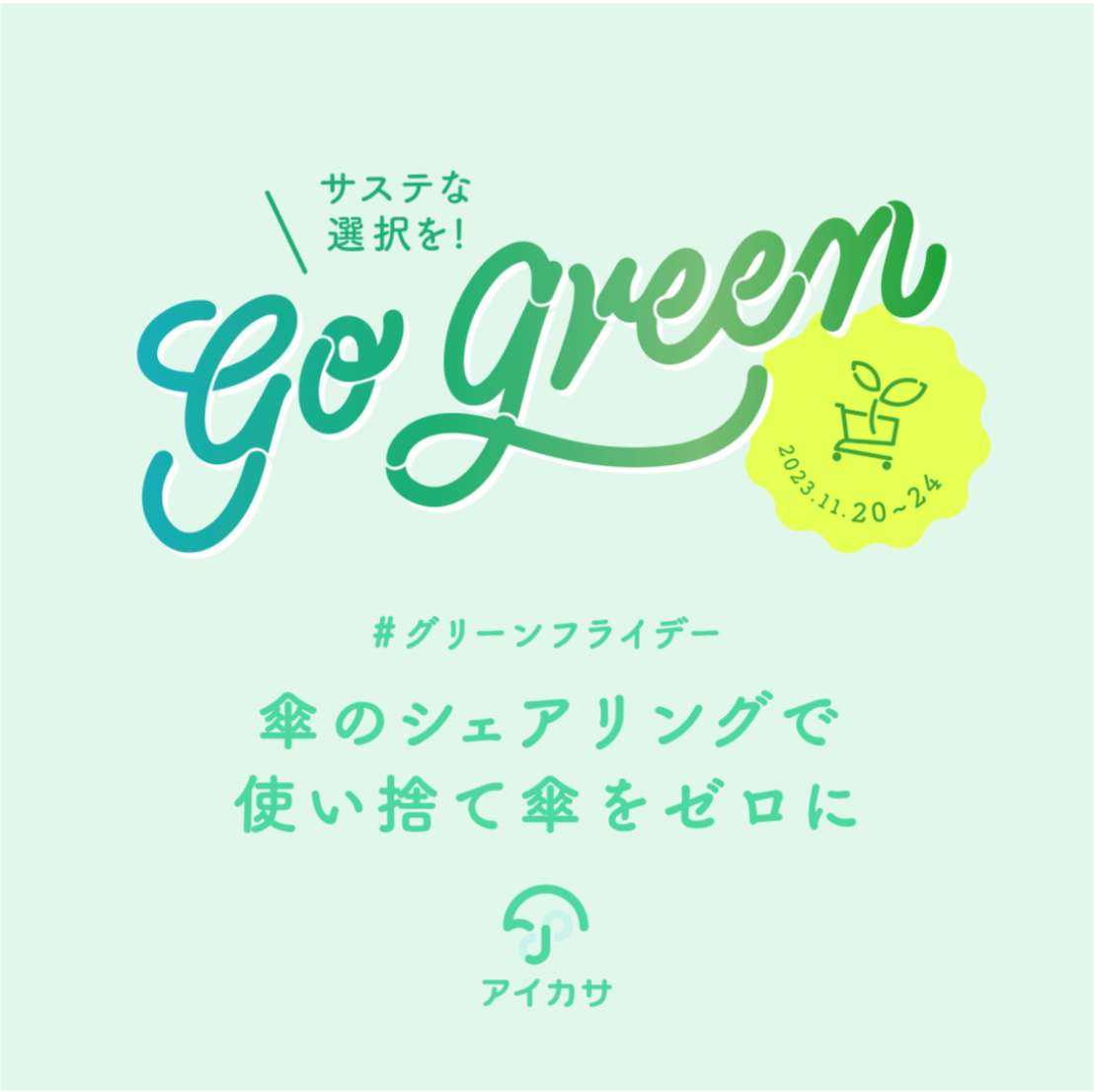 また、17日(金)19時〜シェアウィーク最終日@虎ノ門ヒルズフォーラム会場内のグリーンフライデー展示にてアイカサも展示させて頂いております。