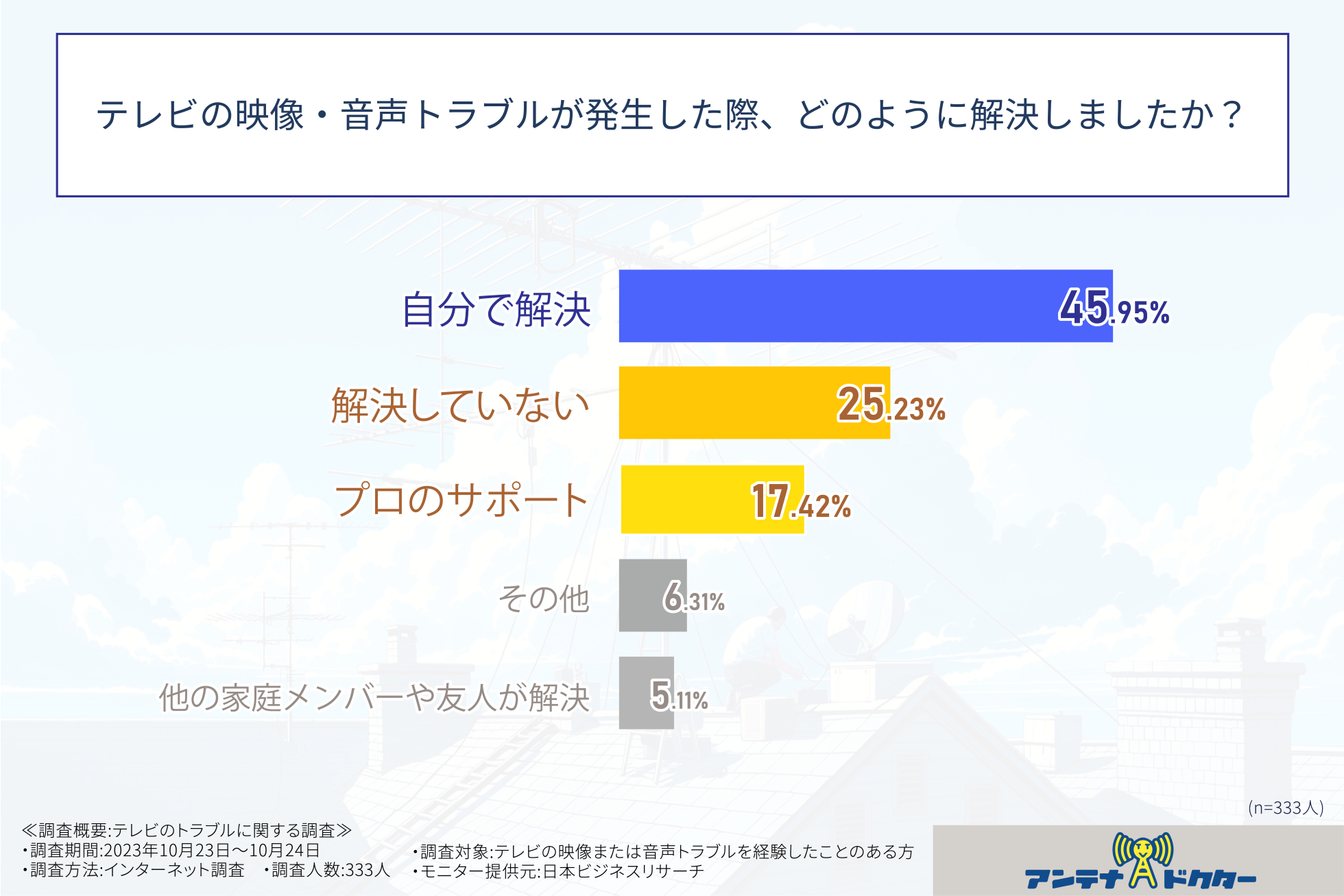 これはプロのサポートを受けることが、テレビトラブルの解決に適していることが調査結果から考えられます。