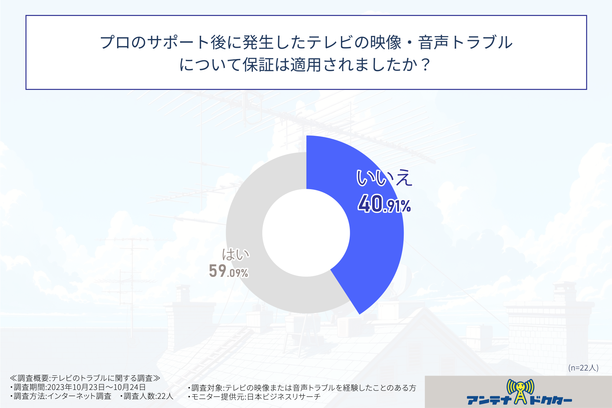 その為、テレビトラブルを解決する際にプロへ依頼する場合は、保証がしっかりと備わっているプロを選定基準としておくことが調査結果から言えるのかもしれません。