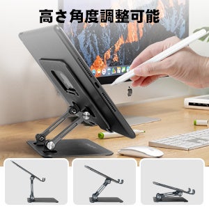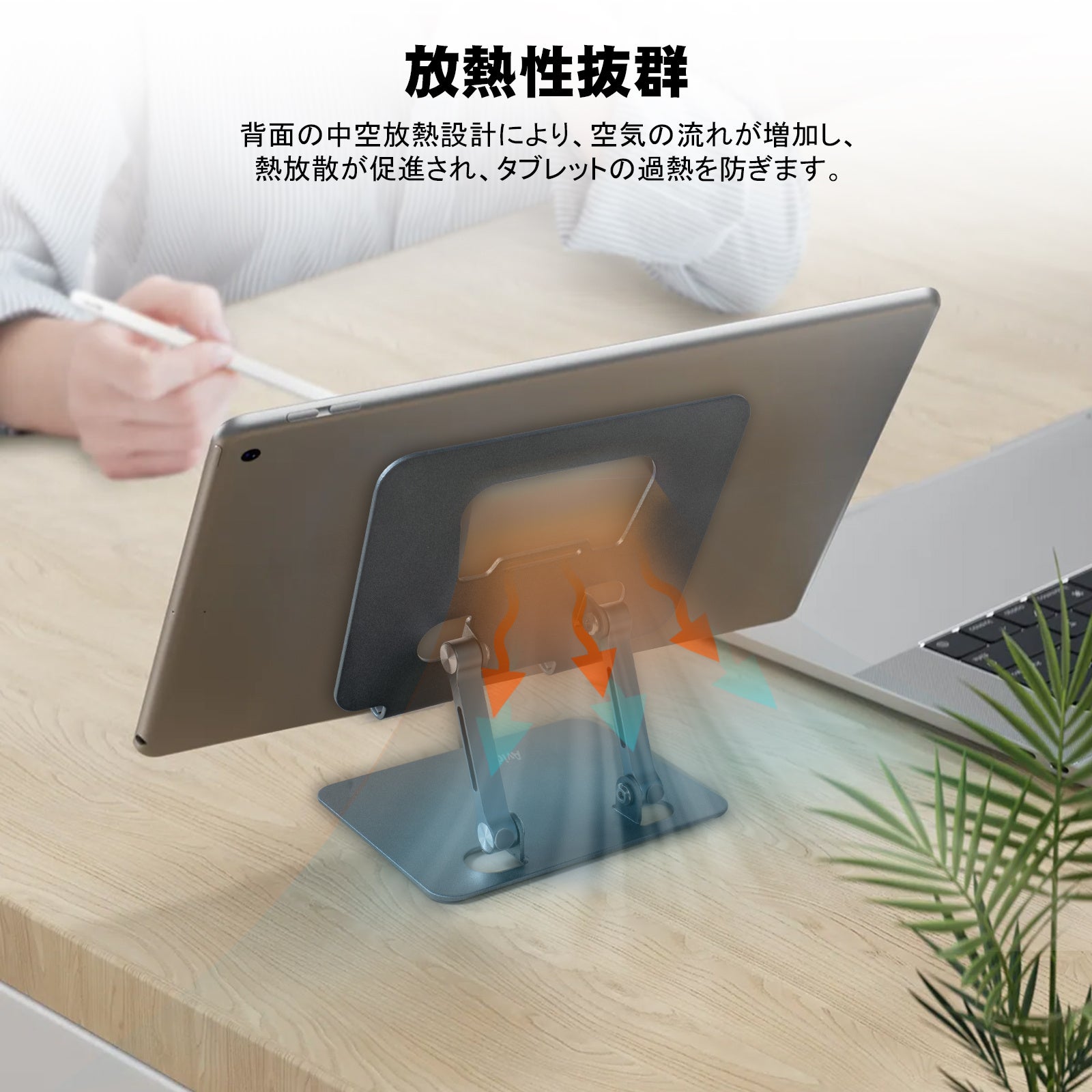 ✅【高さ角度調整可能&人間工学設計】人間工学に基づいて設計により、10°から80°までお好みの角度&高さ自由にに調節できて快適な角度で楽に作業できるようになります。アイパッドスタンドを使ってタブレットに適切な角度と高さを設定することで、視線が高くなり、適切な姿勢を保つことができて肩や腰、首などへの負担が軽減され、猫背などを効果的に防ぐことができます。使いやすさと快適性を両立させています。