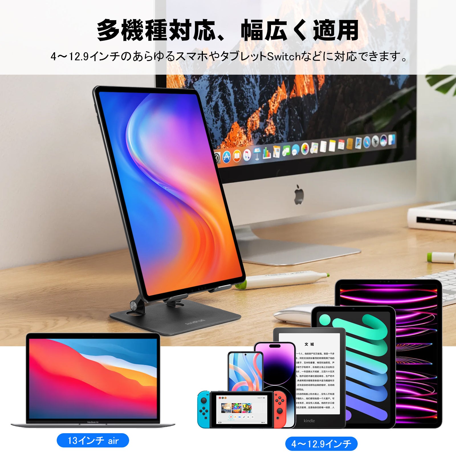 ✅【幅広い対応4インチから12.9インチまで】 AvidPadタブレットスタンドは幅広いタブレットサイズに対応しており、約4-12.9インチのデバイス(iPad Pro 12.9 / 7.9 / 9.7 / 10.2 / 10.5 / 10.9 / 11 / mini 2 3 4 / air 1 2 3 4, S9 S8 S7 S6, AvidPadタブレットにも)多様な端末に対応し。キッチン ・ オフィスデスク ・ ナイトテーブル ・など幅広い用途でご利用いただけます。